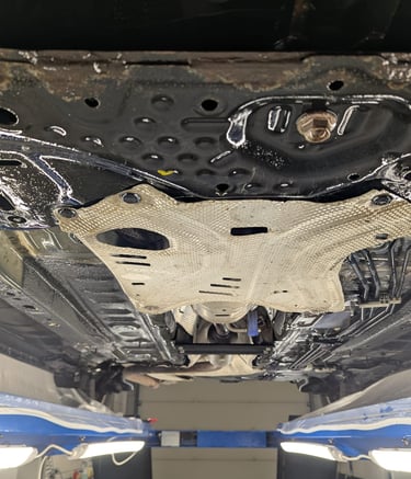 Het volledige chassis van de wagen wordt ingespoten met een ontvettend + zout-verwijderend product. Daarna wordt het chassis onder hoge druk zuiver gespoten. Hierna krijgt de wagen enkele uren de tijd om te drogen en waar nodig drogen we machinaal.